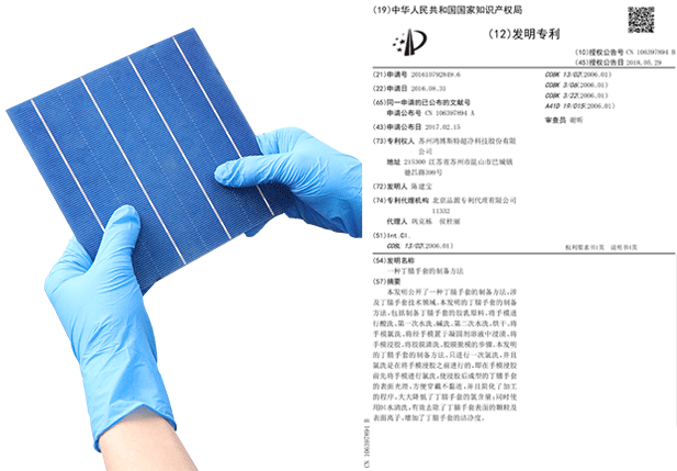 手套經(jīng)過特殊工藝處理,通過驗證將手套放置氮氣柜當(dāng)中80H,手套接觸產(chǎn)品無任何氧化情況,經(jīng)權(quán)威機構(gòu)檢測氯元素及硫元素完全符合接觸電池片標(biāo)準(zhǔn),且不會在電池片上面留下任何指印。
